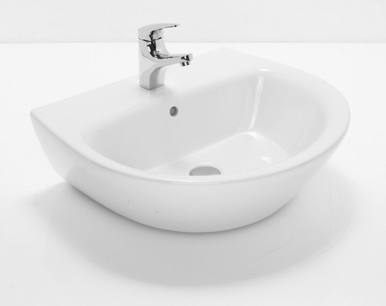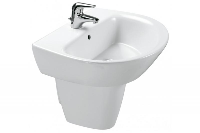 Раковина Gala Jazz 28030 с крепежом. Одно отверстие для смесителя, цвет белый. Артикул 28030. Дополнительно вы можете приобрести полупьедестал с крепежом или пьедестал.