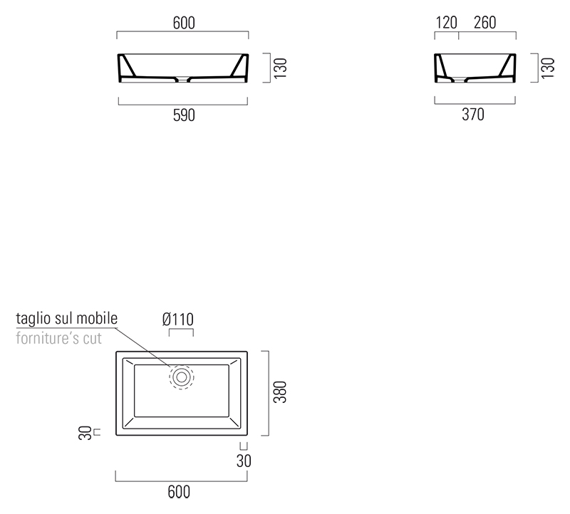 Раковина накладная GSI Kube 60/T 8983011. Все внешние поверхности раковины полностью покрыты глазурью.