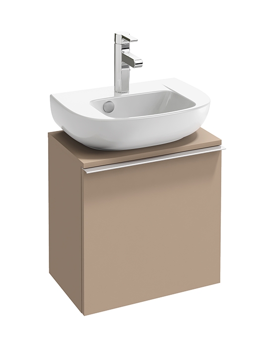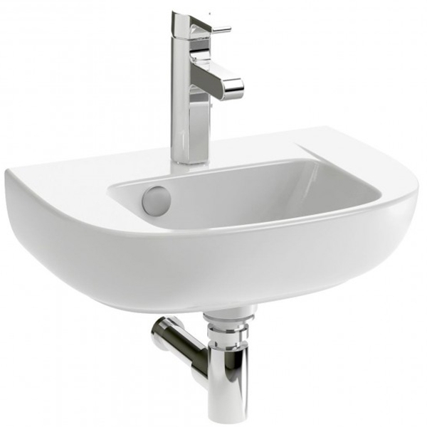 Компактная раковина с одним отверстием под смеситель дополнит интерьер ванной комнаты в современном стиле.