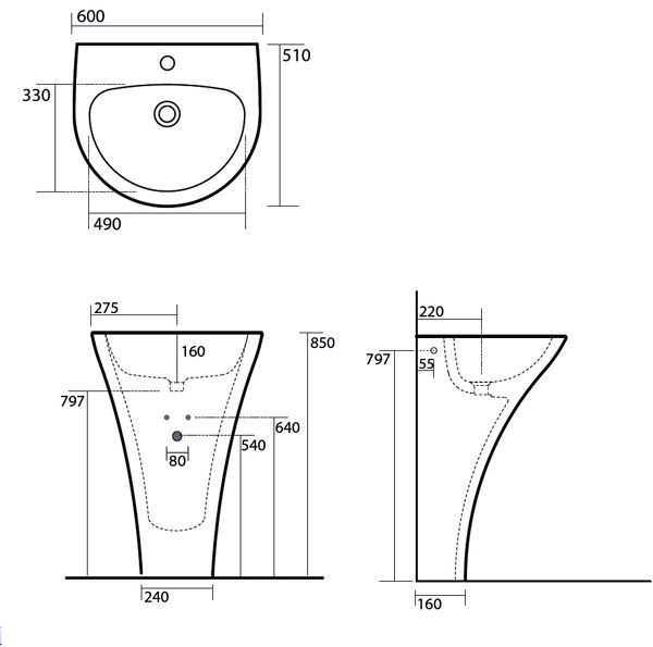 Раковина Kerasan Aquatech 3741, размер 60 см, монолит.