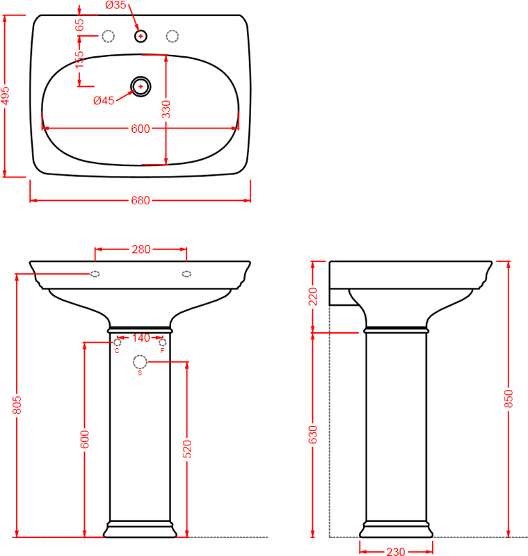 Раковина Artceram Civitas 68 CIL001 34 00 выполнена в лаконичном ретро дизайне и хорошо дополнит интерьер ванной комнаты. Раковина проста в монтаже, надежна и долговечна.