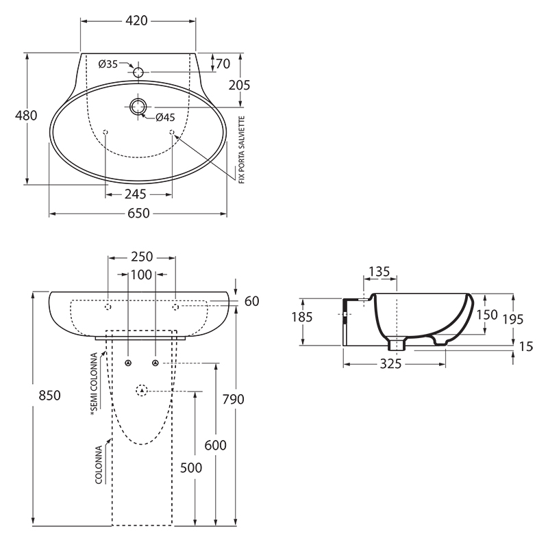 Раковина Azzurra Clas+ CLA 200/65 с мягкими линиями. Создает иллюзию уменьшенного объема и напоминает невесомое облачко. Одно отверстие для смесителя выбито.