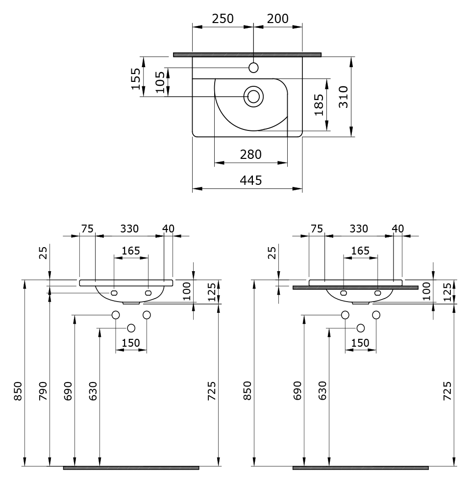 - одно готовое отверстие под смеситель, отверстие перелива.
