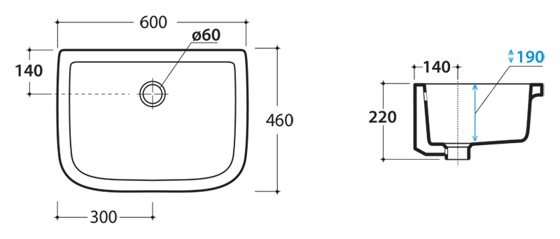 Раковина постирочная Globo Lavabi d arredamento Sele VA044 белая глянцевая, с переливом. В комплекте поставки: чаша раковины.