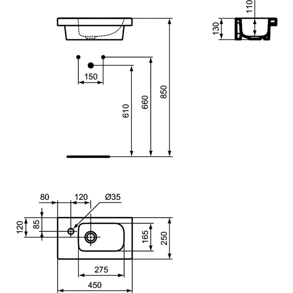 Прямоугольная раковина Ideal Standart Connect Space 45 E136201 с отверстием для смесителя - изготавливается из высококачественных материалов. Для монтажа с мебелью. Цвет: белый.