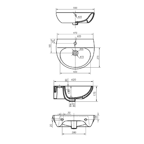 Раковина Ifo Frisk RS020500000 шириной 500 мм.