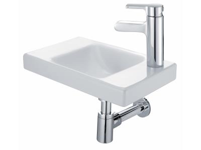 Прямоугольная раковина Jacob Delafon Odeon Up 40 E4799G-00 с переливом, смеситель с правой стороны.