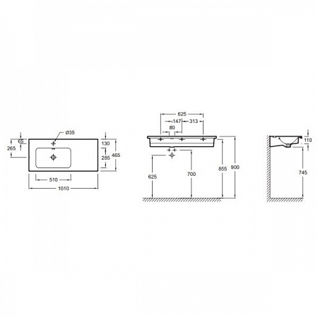 - Готовых отверстий под смеситель: одно, по центру, D 3,5 см.