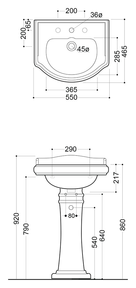 Раковина Kerasan Retro 55 1045 Белая с одним отверстием под смеситель