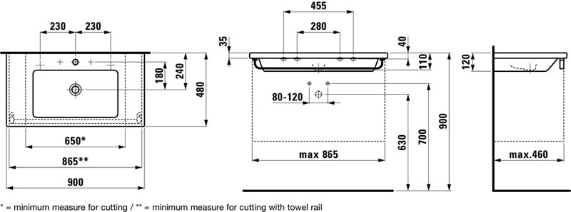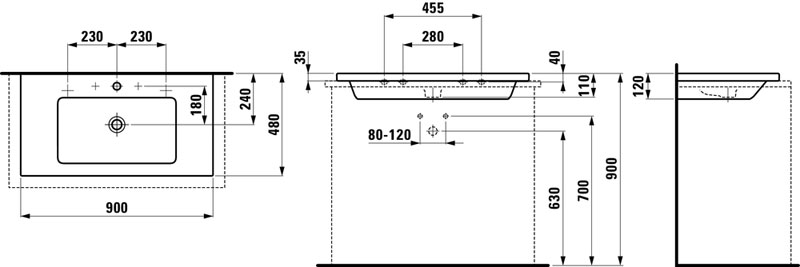 Подвесная раковина Laufen Living Square шириной 90 см. Артикул: 8.1643.3.000.104.1.