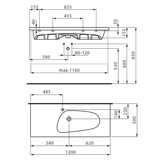 Раковина-столешница Laufen Palomba шириной 120 см. Артикул: 8.1480.6.000.104.1.