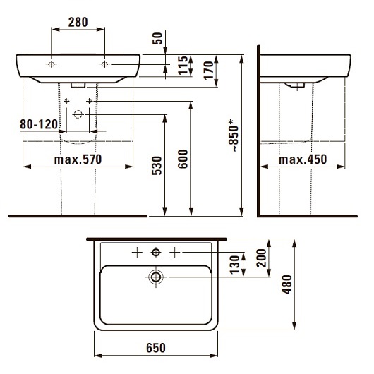 Раковина Laufen Pro A шириной 65 см. Артикул: 8.1895.3.000.104.1.