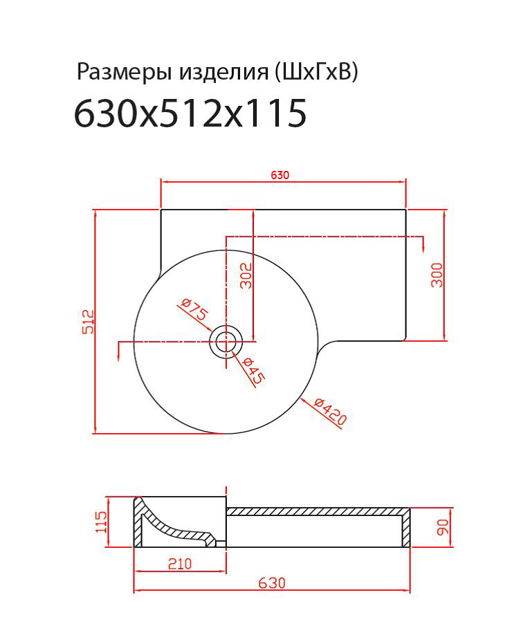 Габариты: (ШхДхВ) 63 х 51.2 х 11.5 см.