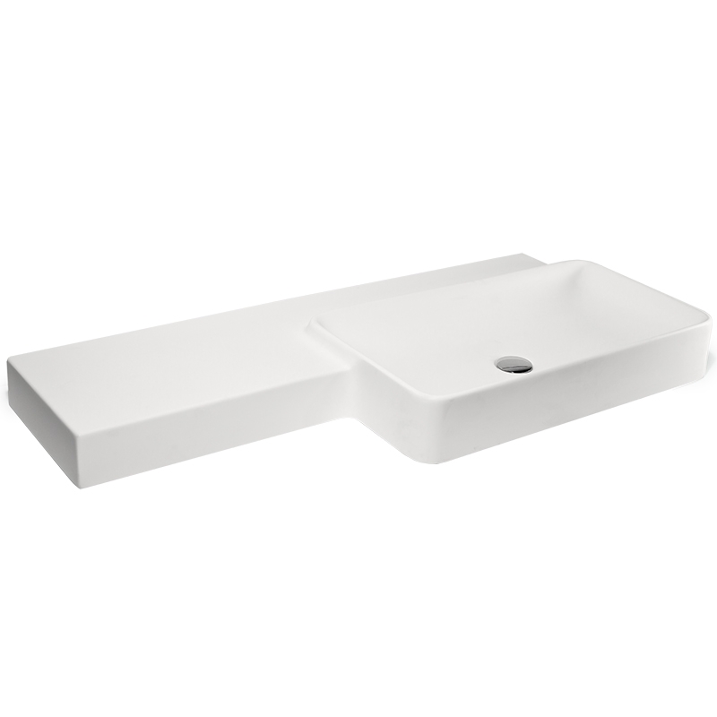 Настенная раковина Montebianco Monza Uno 12251 белого цвета со столешницей слева. Будет идеально смотреться в просторной ванной комнате с современным дизайном.