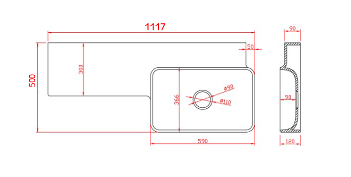 Габариты: (ШхДхВ) 111.7 х 50 х 12 см.