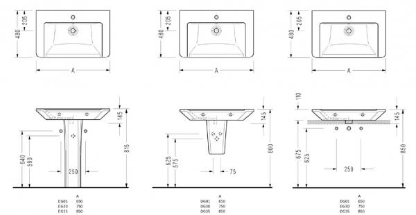 Раковина Serel Diagonal 85 DG35, белого цвета.