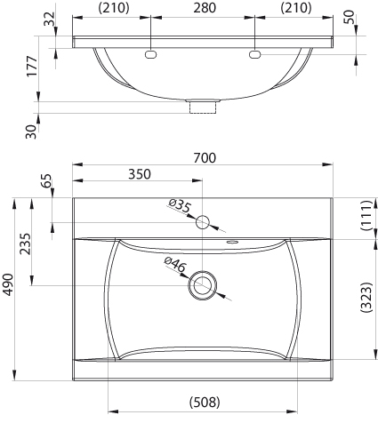Раковина Ravak Classic 700. Отверстие под смеситель 35 мм.