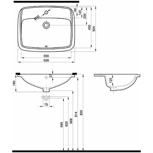 - Размер раковины (ШхДхВхГ): 55 х 45 х 19 х 12,5 см.
