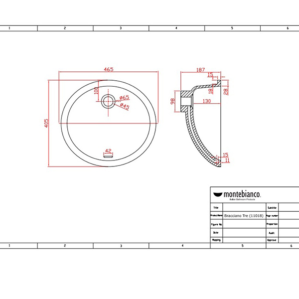 Раковина Montebianco Bracciano Tre 11018 овальной формы отлично подойдет для ванных комнат с современным дизайном.