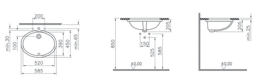 Овальная раковина Vitra Arkitekt 6069B003-0012 с переливом, встраиваемая снизу.