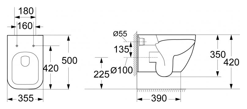 - Расстояние между болтами для монтажа унитаза: 18 или 23 см.