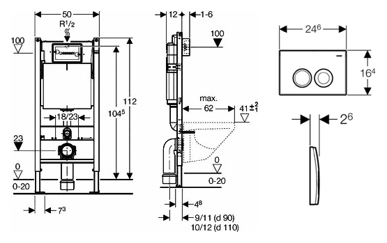 - Смывной бачок скрытого монтажа с фронтальным механическим управлением.