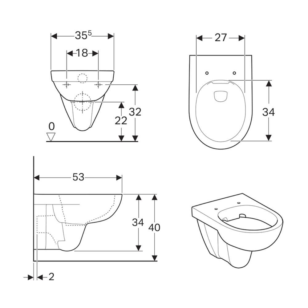 - Расстояние между болтами для монтажа унитаза: 18 или 23 см.
