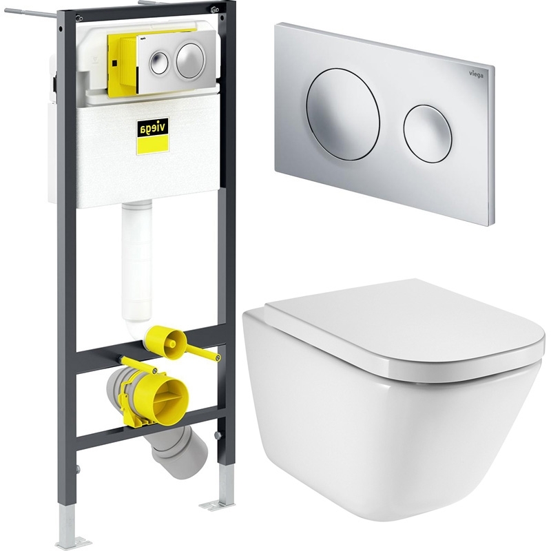Комплект унитаза Roca The Gap 34647L000 с инсталляцией Viega Prevista Dry 792855 с сиденьем Микролифт и клавишей смыва Хром