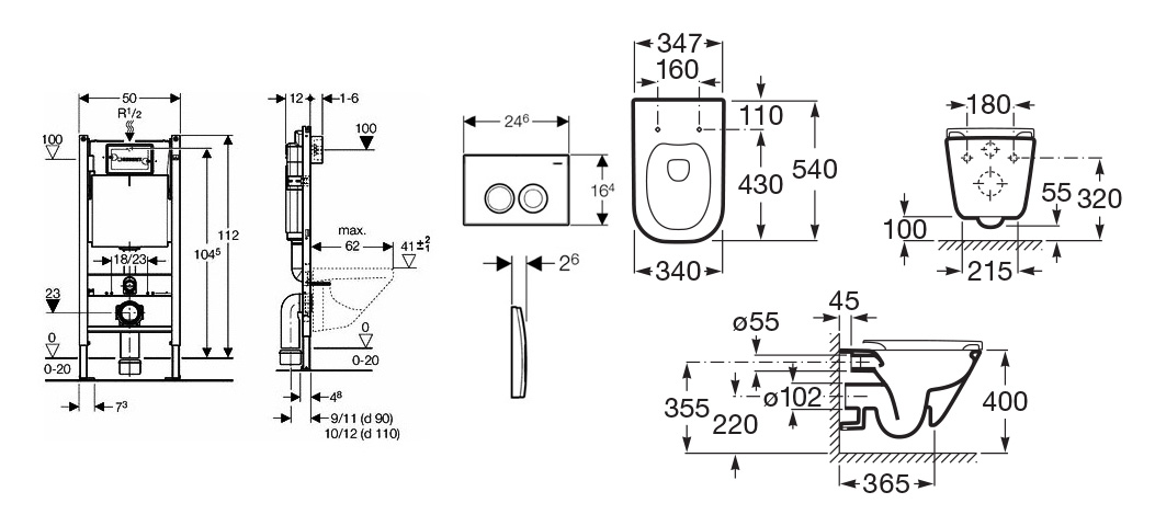 - Смывной бачок UP100: скрытый монтаж, толщина 12 см.