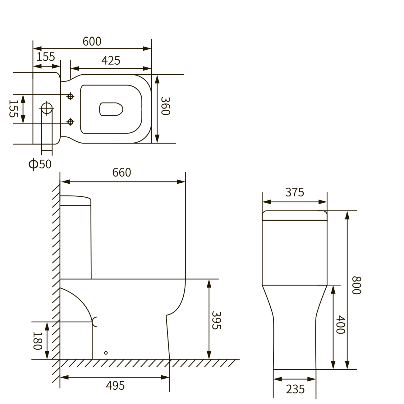 Унитаз компакт Acquasi Lando AS8600CPR без бачка и сиденья