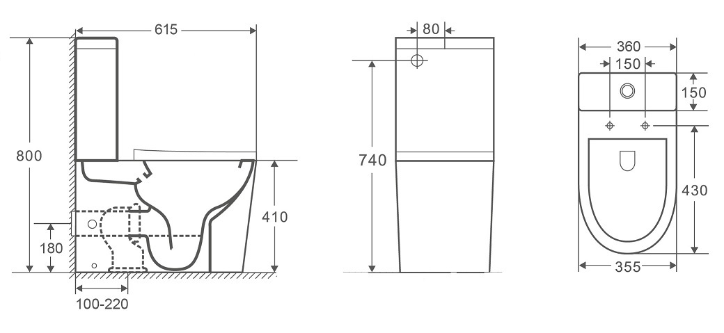 - Безободковая конструкция: отсутствие смывного края делает уход за унитазом проще.