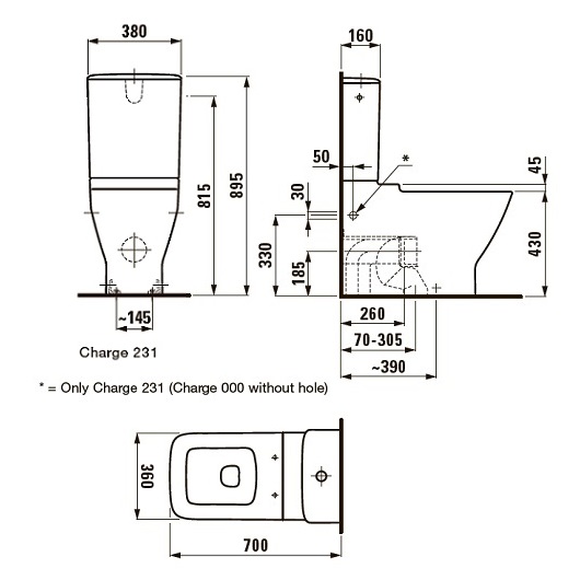Чаша унитаза-компакта Laufen Palace New 8.2470.6 без бачка и сиденья, боковые отверстия