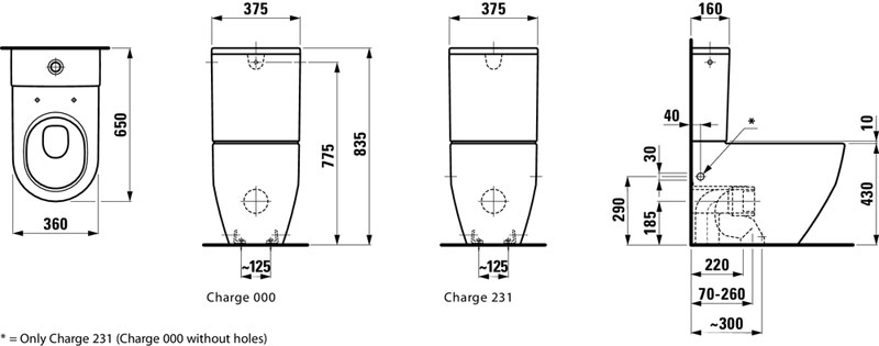 Чаша унитаза-компакта Laufen Pro New 8.2595.2 с боковым подводом воды, без бачка и сиденья