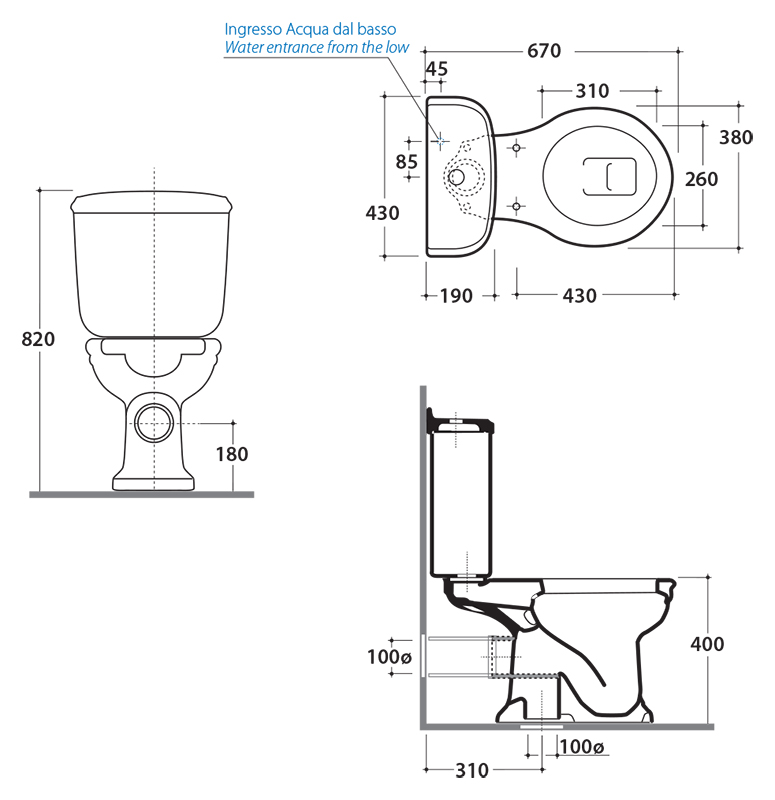 Унитаз Globo Paestum PA003 без бачка и сиденья, выпуск в пол