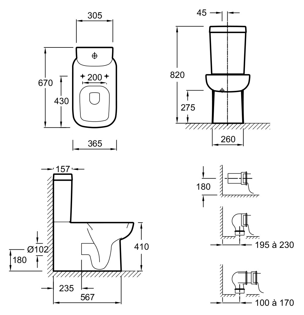 - Универсальный выпуск: возможность выбрать направление слива.