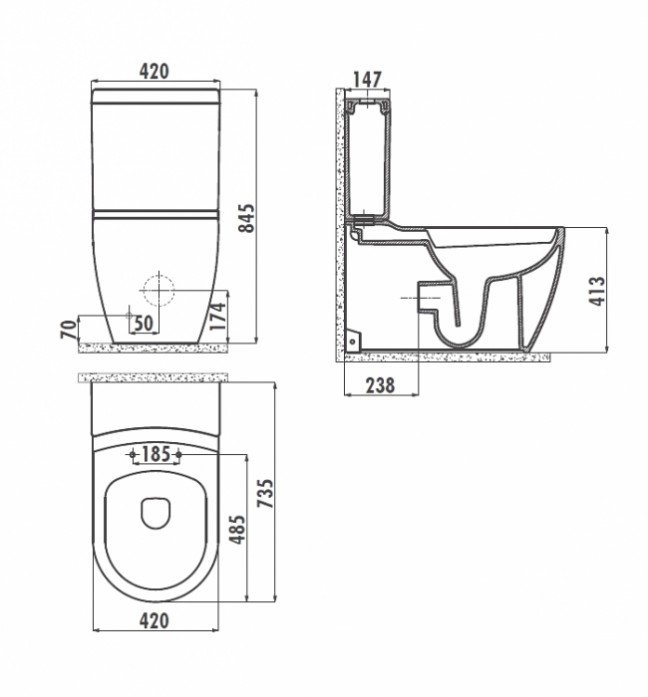 Унитаз компакт Creavit Grande GR360-11CB00E-0000 Белый без бачка и сиденья