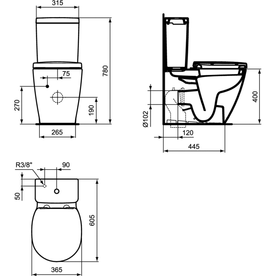 Унитаз компакт Ideal Standard Connect Space E119601 без бачка и сиденья