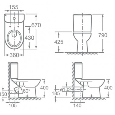 - Бачок: нижний подвод воды.