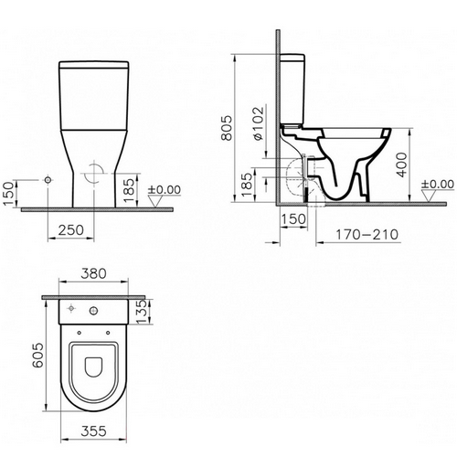 Унитаз-компакт Vitra Diana 9816B003-7201 напольный.