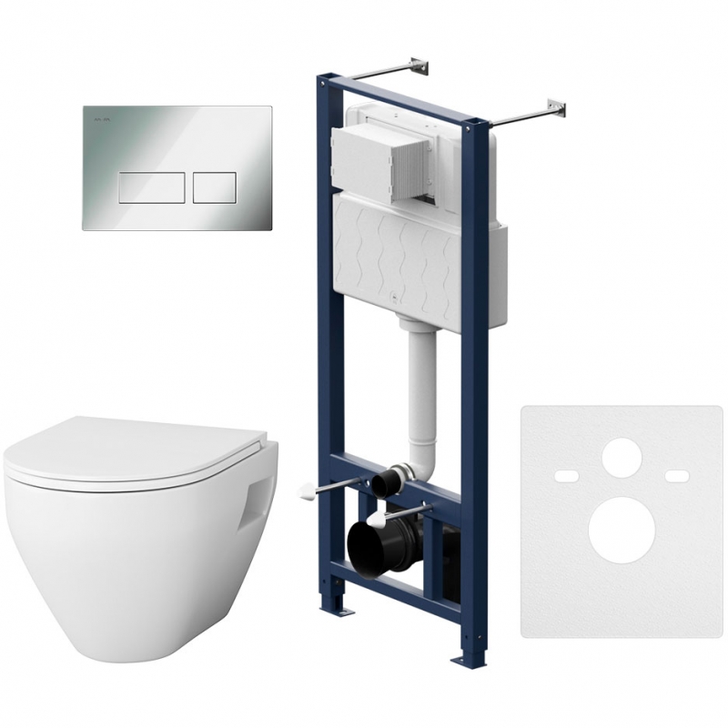 В комплекте поставки: инсталляция, унитаз, крышка-сиденье, клавиша смыва, комплект крепежей.