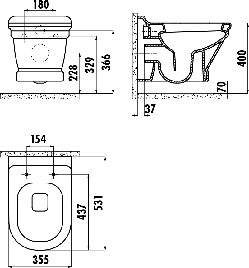 Подвесной унитаз Creavit Antik AN320-00CB00E-0000 с функцией биде. Экологически чистые материалы, сертификат EPD.