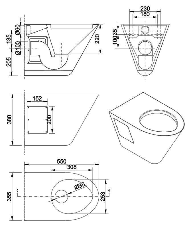 Унитаз подвесной Nofer 13018.B, антивандальный, с горизонтальным выпуском, для ручной или автоматической системы слива. Унитаз выполнен из нержавеющей стали AISI 304, толщиной 2 мм в несущей конструкции и 1 мм в остальной, полностью сваренный без швов, без острых углов. Он долговечен, устойчив к коррозии и легко очищается. Подключение воды 60 мм, отверстие для слива 100 мм. Цена указана за чашу унитаза. Все остальное приобретается дополнительно.