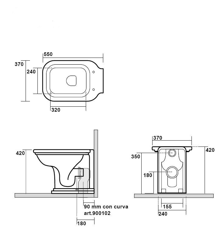 Унитаз приставной Kerasan Waldorf 411801bi. Горизонтальный выпуск. В комплекте поставки: чаша унитаза.