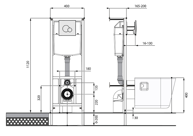 - Размер (ШхВхГ): 400х1120х200 мм.