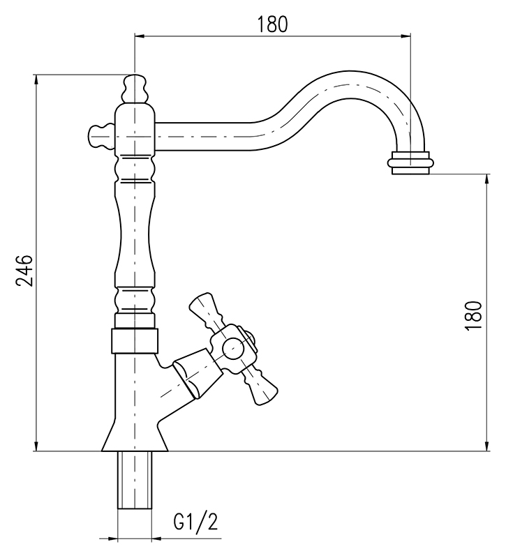 Кран для одного типа воды Rav Slezak Morava retro MK194/8SM с аэратором, изготовлен из высококачественной латуни, которая исключает какую-либо коррозию. Кран может быть установлен в кухне для фильтрованной воды. Качественная керамическая кран-букса, гарантирует долговечность и мягкий поток воды. Подвод воды G1/2. В комплекте кран и комплект крепления.