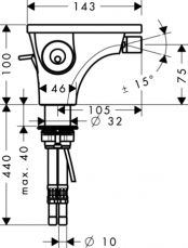 Смеситель для биде Axor Massaud 18210000 однорычажный. Аэратор с шарнирным соединением, картридж джойстикового типа, ограничитель расхода воды до 7 л/мин, донный клапан. Совместим с проточным водонагревателем.