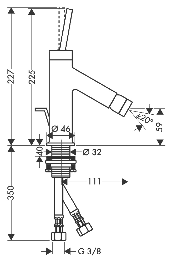 Смеситель для биде Axor Starck 10211000 однорычажный. Аэратор с шарнирным соединением, картридж джойстикового типа, ограничитель расхода воды до 7 л/мин, аэратор QuickClean, донный клапан. Совместим с проточным водонагревателем.