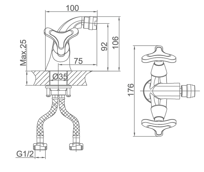 Смеситель для биде D&K Goethe Hessen DA1382241 с поворотным аэратором, двухзахватный на одно отверстия для монтажа.