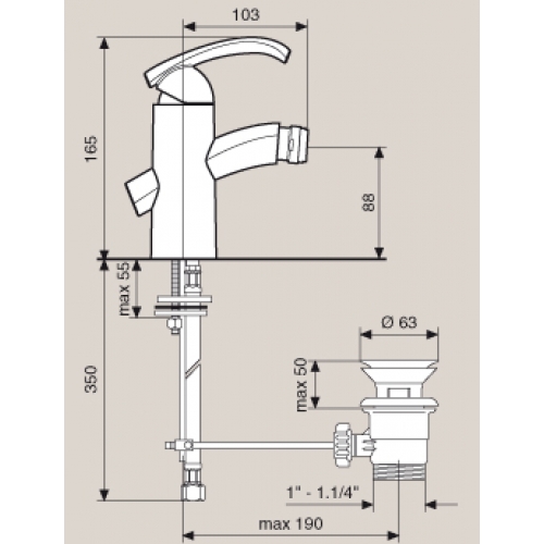 Смеситель Emmevi Dakota 73004 для биде. Однорычажный, с донным клапаном. Цвет хром.