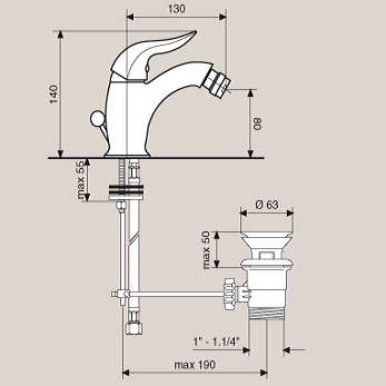 Смеситель Emmevi Duka 44004 для биде. Однорычажный, с донным клапаном. Цвет хром.